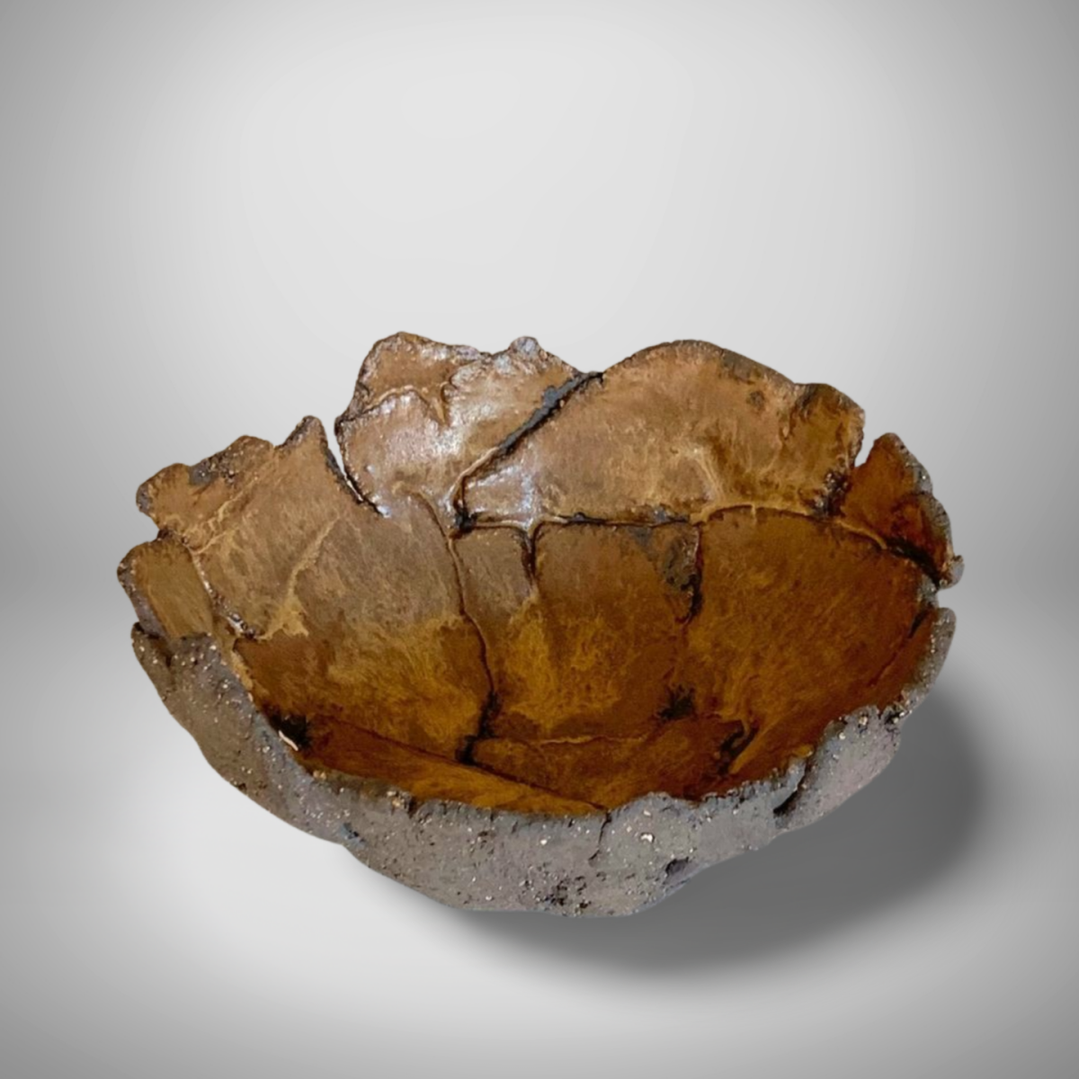Pièce en grès noir, grosse chamotte, extérieur brut, intérieur émaillé, env. ∅ 17 cm, haut. 8 cm.