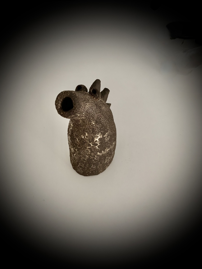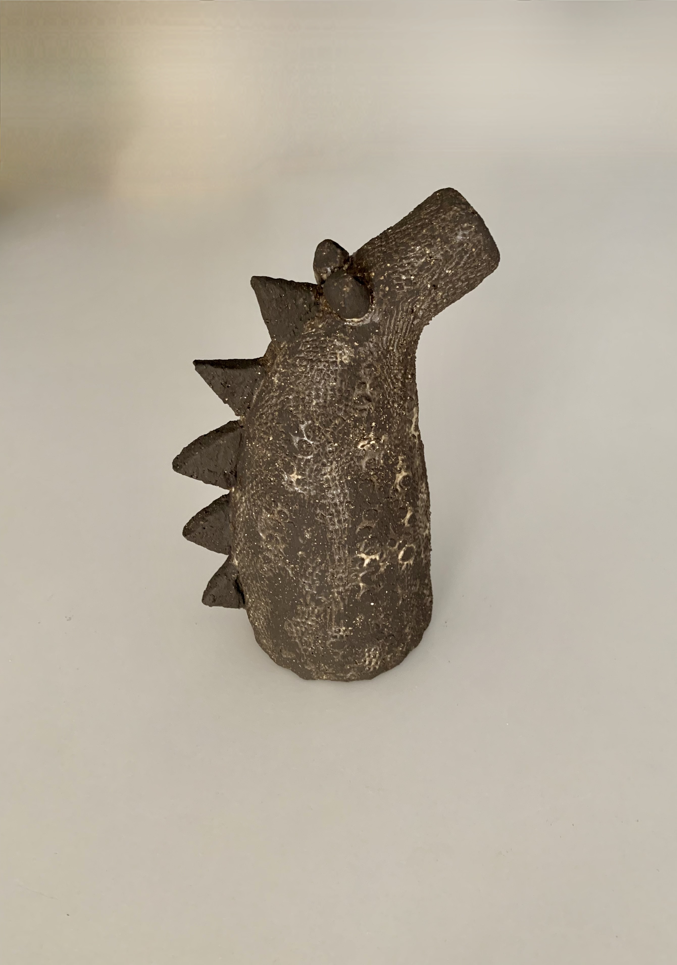 Dragon pour cône d'encens, grès noir chamotté, émail frotté, haut. 20 cm.