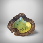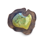 Petit plat en grès sable chamotté, intérieur émaillé, les bords passés à l'oxyde de fer, ∅ 23 cm environ.