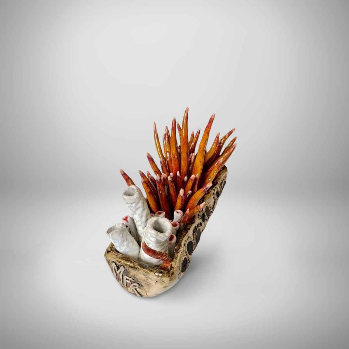 Pièce en grès blanc émaillée, larg. 8 cm, long. 22,5 cm et haut. 15 cm.