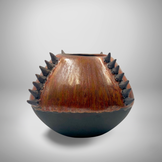Vase en grès blanc, engobe partie inférieure et émail pour le reste, haut. 15 cm, larg. 16,5 cm environ