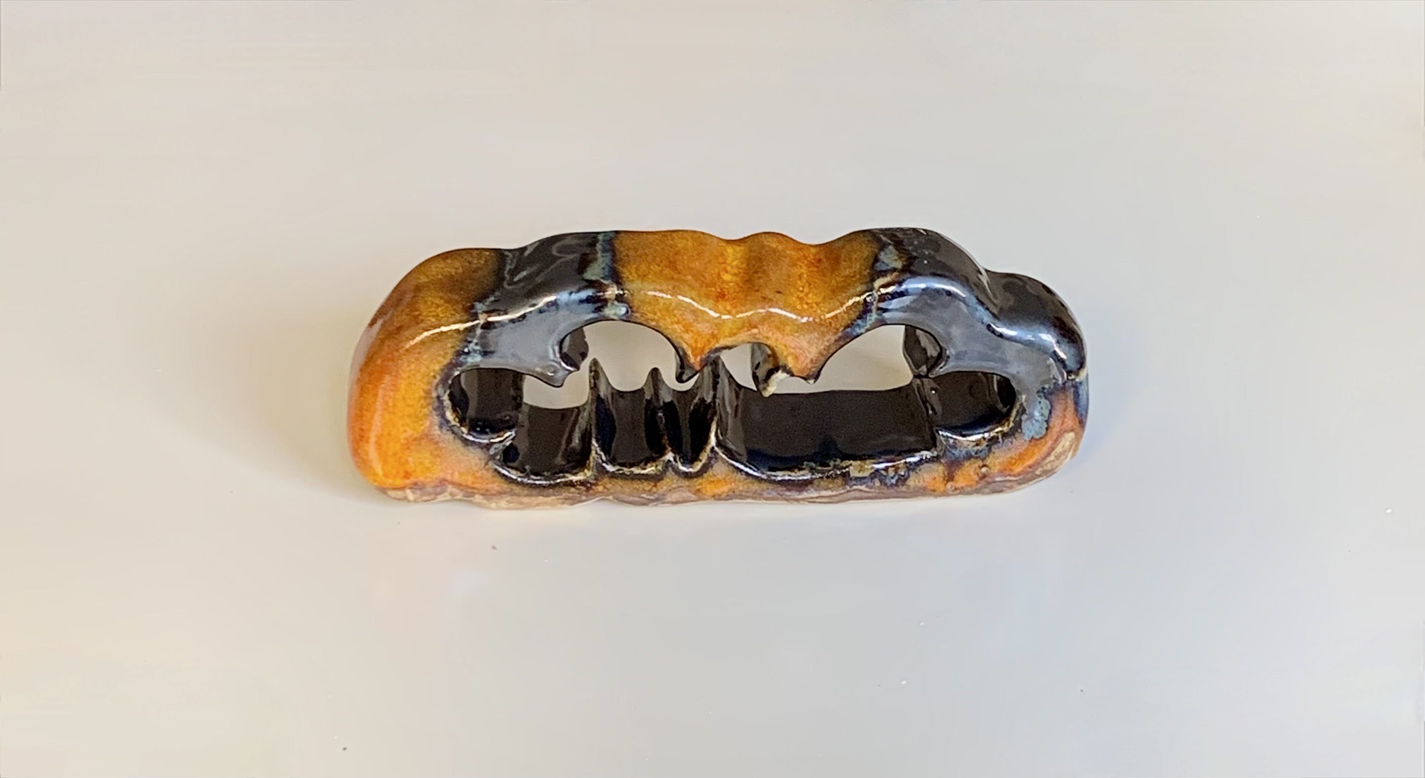 Pièce en grès blanc, émaillé, haut. cm, long. 20 cm, haut. 6,5 cm, larg. 4 cm.