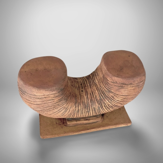 Pièce en grès chamotté couleur sable, larg. 18 cm, haut. 10 cm.