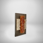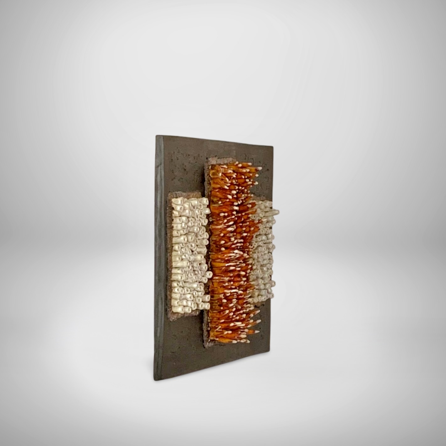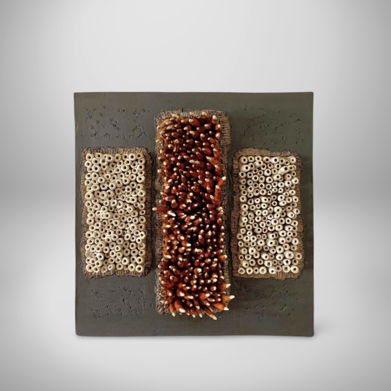 Tableau en grès blanc, fond noir en engobe et le reste émaillé, 27 x 27 cm
