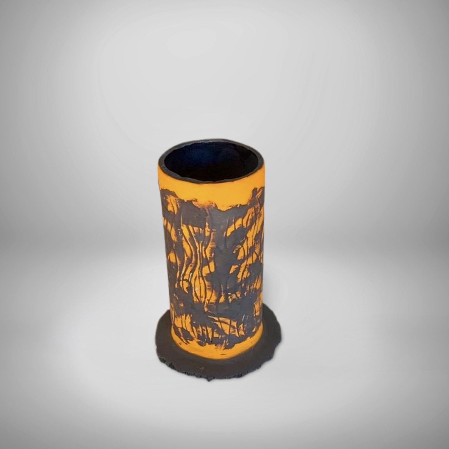 Vase en grès noir, extérieur engobe, intérieur émaillé, haut. 19 cm, ∅ 9 cm.