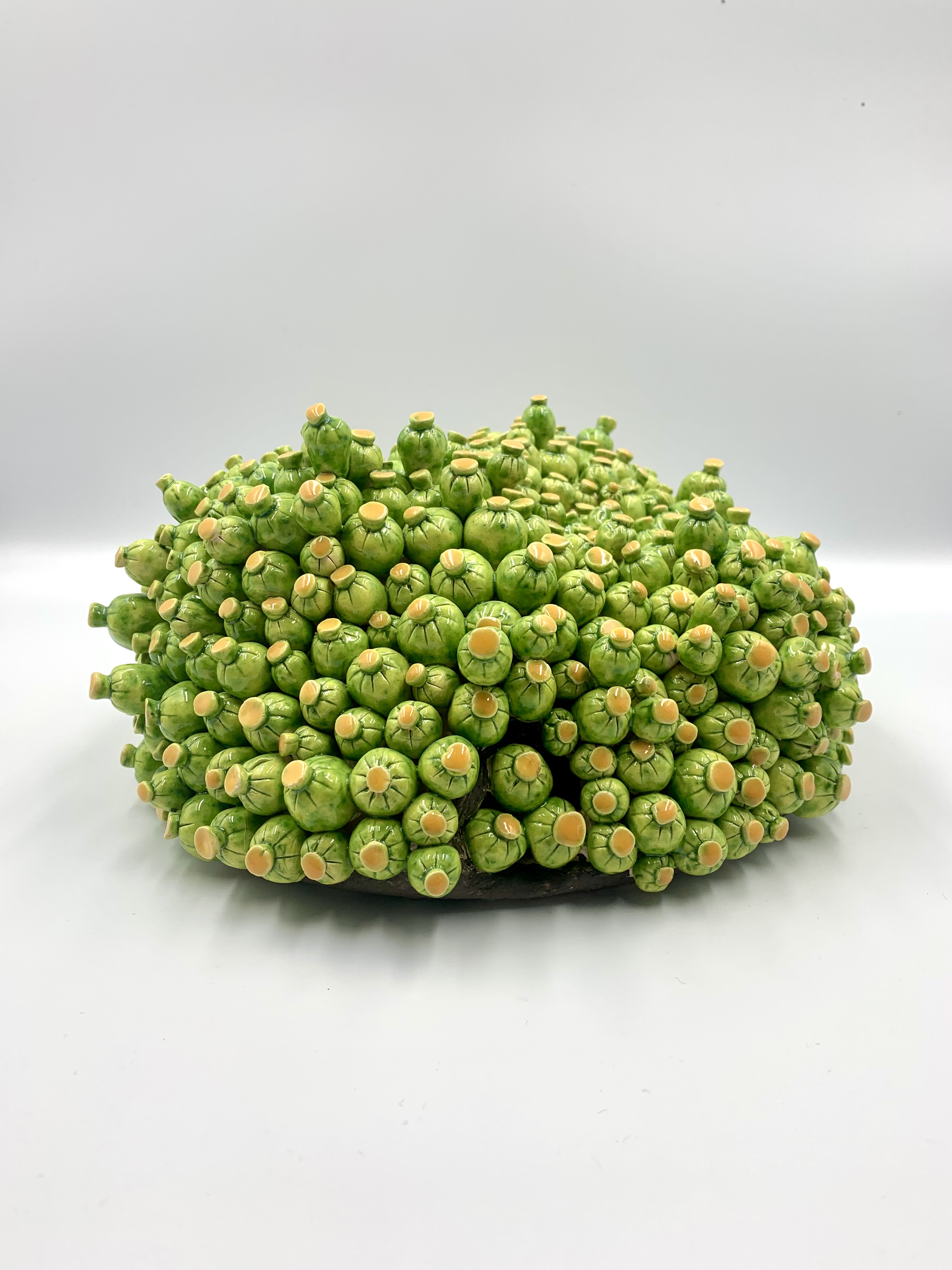 Pièce en grès blanc émaillé, cuit en basse température, haut. 25 cm, larg. 25 cm.